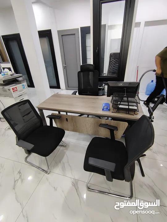 اثاث مكتبي للبيع مستعمل 3 كرسي ومكتب استعمال نطيف