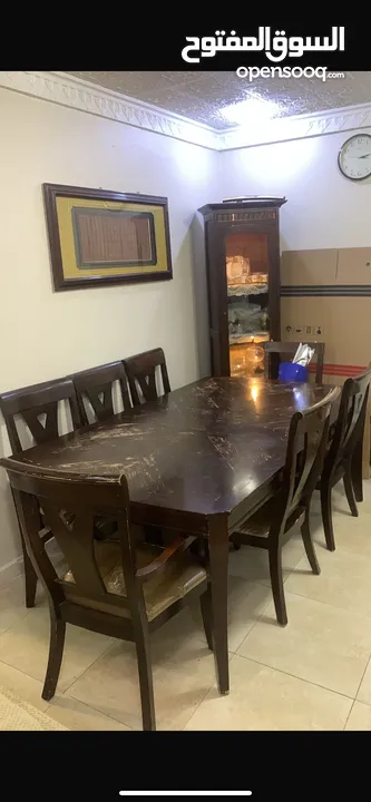 طاولة وكراسي و 3 خزاين وسرير طابيقين مفرد ونص وخزانة تلفزيون وتلفزيون