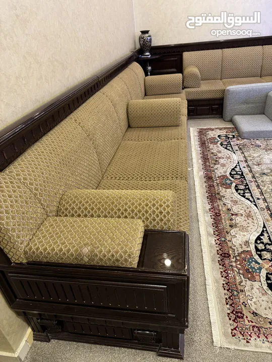 دوانية رجاليه بحالة جيده تفصال من معرض فنتك معها 4طاولات جانبيه+طاوله وسط متر\متر بالاضافه الي طاولة سيرفس الشاي والقهوة والماء..