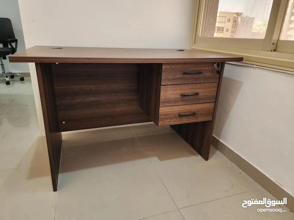 للبيع طاولة مكتب لون بني غامق فخمة كالجديد (140×70), بيعة سريعة.