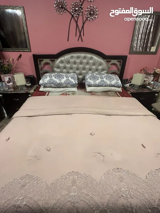 للبيع غرفه نوم جديده من صفاه الغانم تشمل سرير و 2كمود و تسريحه و كرسي و دولاب